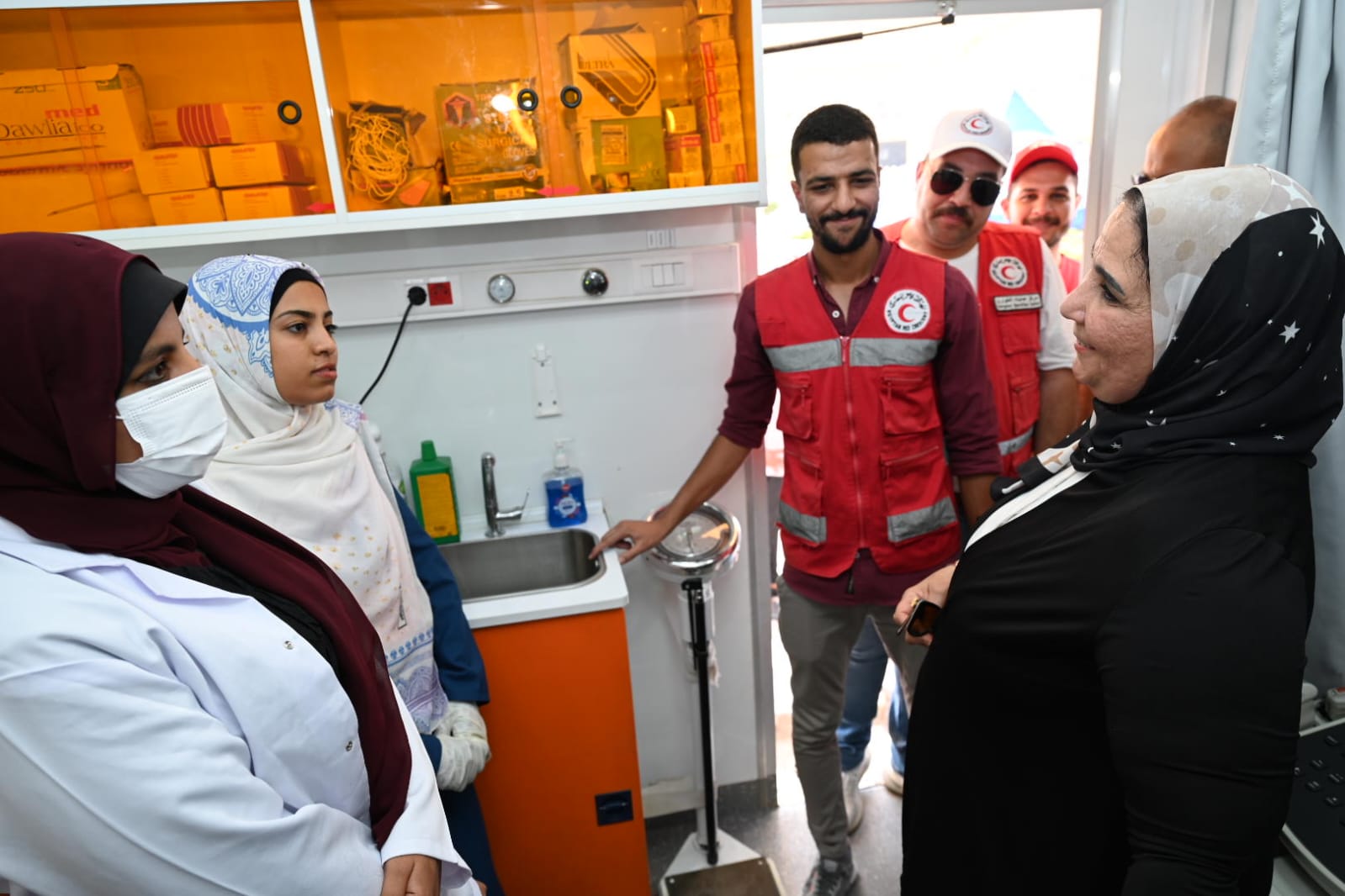وأطلعت القباج على الخدمات التي تقدمها النقطة لكل المستفيدين سواء من المصريين أو السادة الوافدين، حيث استمعت لآراء المستفيدين في الخدمات التي تقدمها النقطة الإنسانية، مشيدة بدور الهلال الأحمر المصري وتنوع الخدمات المقدمة ميدانيًا في مناطق تجمع المستفيدين أو من خلال المراكز الإنسانية الحدودية، وكذلك الدور الكبير الذي يقوم به متطوعو الهلال الأحمر المصري .