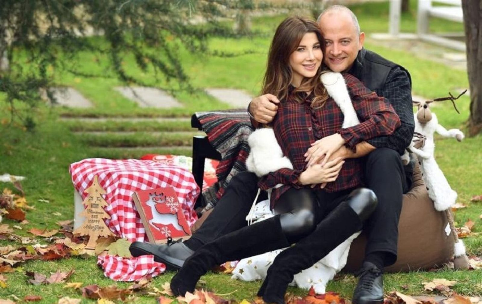 ظهرت نانسي عجرم بملابس كاجوال وزوجها يحتضنها من ظهرها وكانا يمشيان بلطف في الساحة، لتنفي بذلك كل ما يتم تداوله حول علاقتهما.
