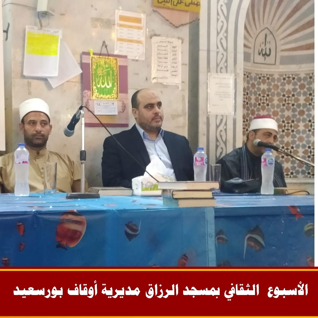 وفي محافظة بورسعيد أقيم الأسبوع الثقافي بمسجد الرزاق.