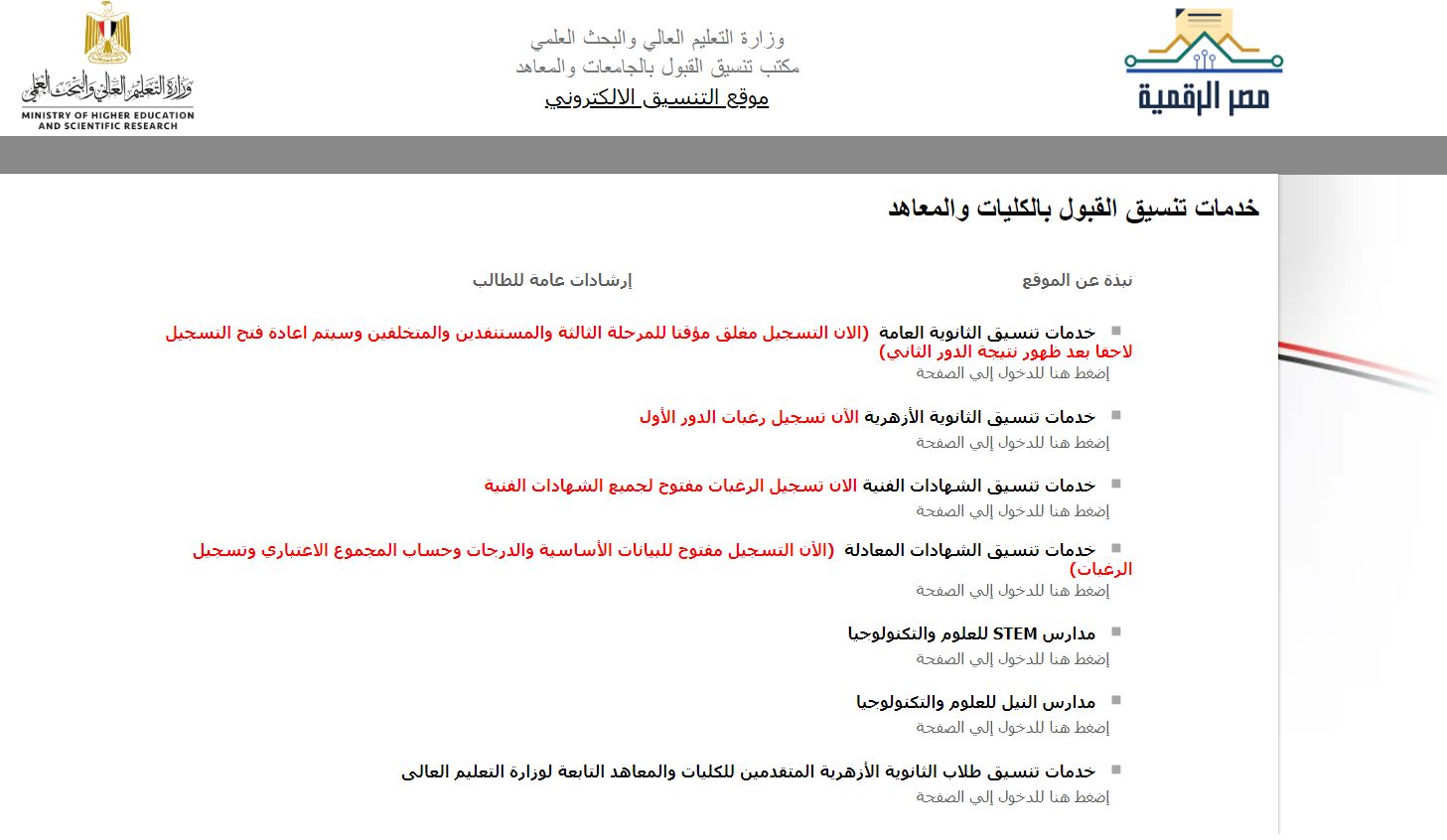 اختيار نتيجة المرحلة الثالثة لتنسيق الجامعات.