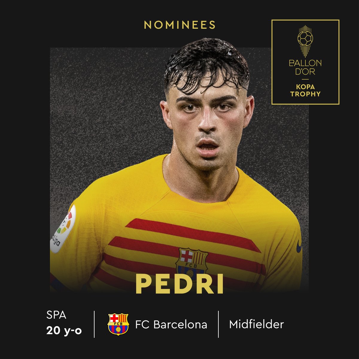ومن المقرر أن يتم الإعلان عن الفائز بجائزة أفضل لاعب شاب خلال حفل الكرة الذهبية "بالون دور" يوم 30 أكتوبر الجاري، وشهدت القائمة وجود 10 لاعبين شباب حول العالم من بينهم ثلاثة لاعبين من نادي برشلونة وثنائي من ريال مدريد.