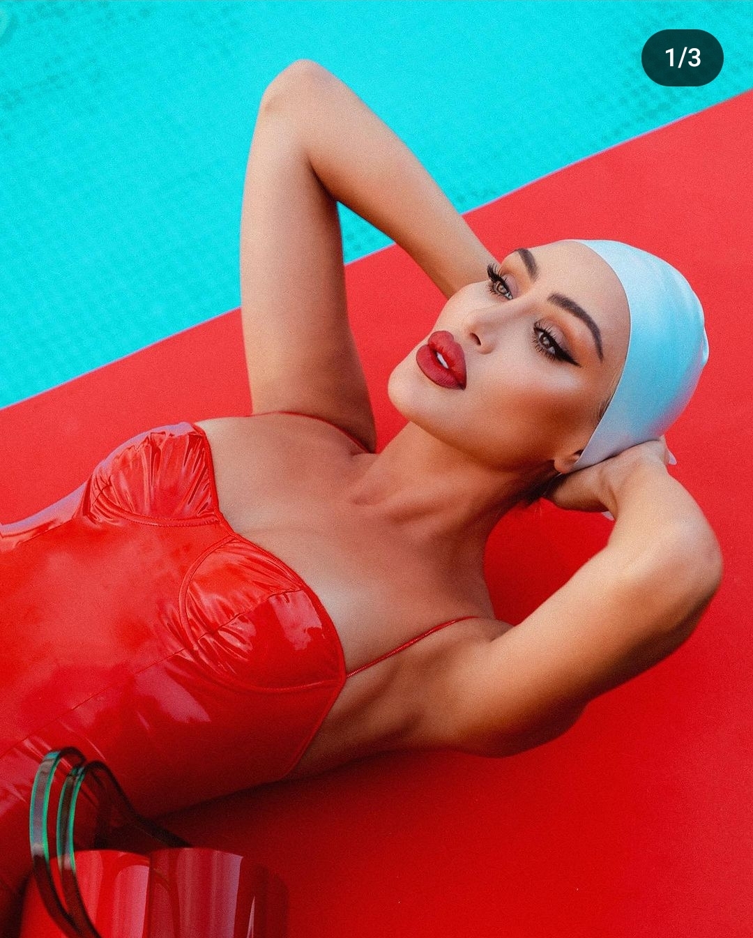 وبدت مايا دياب بإطلالة صيفية لافته، متناغمة مع اجواء العطلة الصيفية وجلوسها أمام حمام السباحة، حيث ارتدت مايوه جرئ، صمم من قماش الجلد اللامع باللون الأحمر الصارخ، عكس قوامها الرشيق.