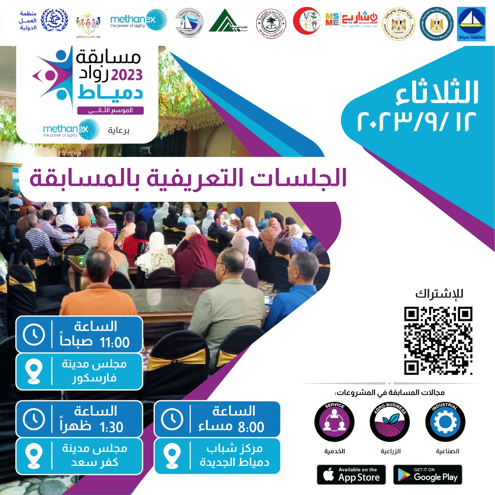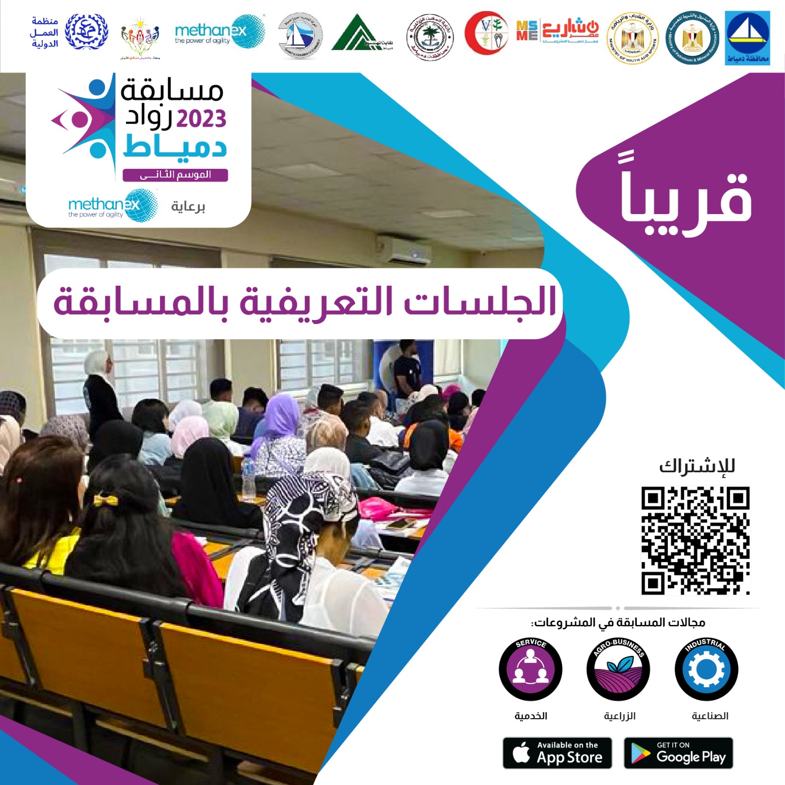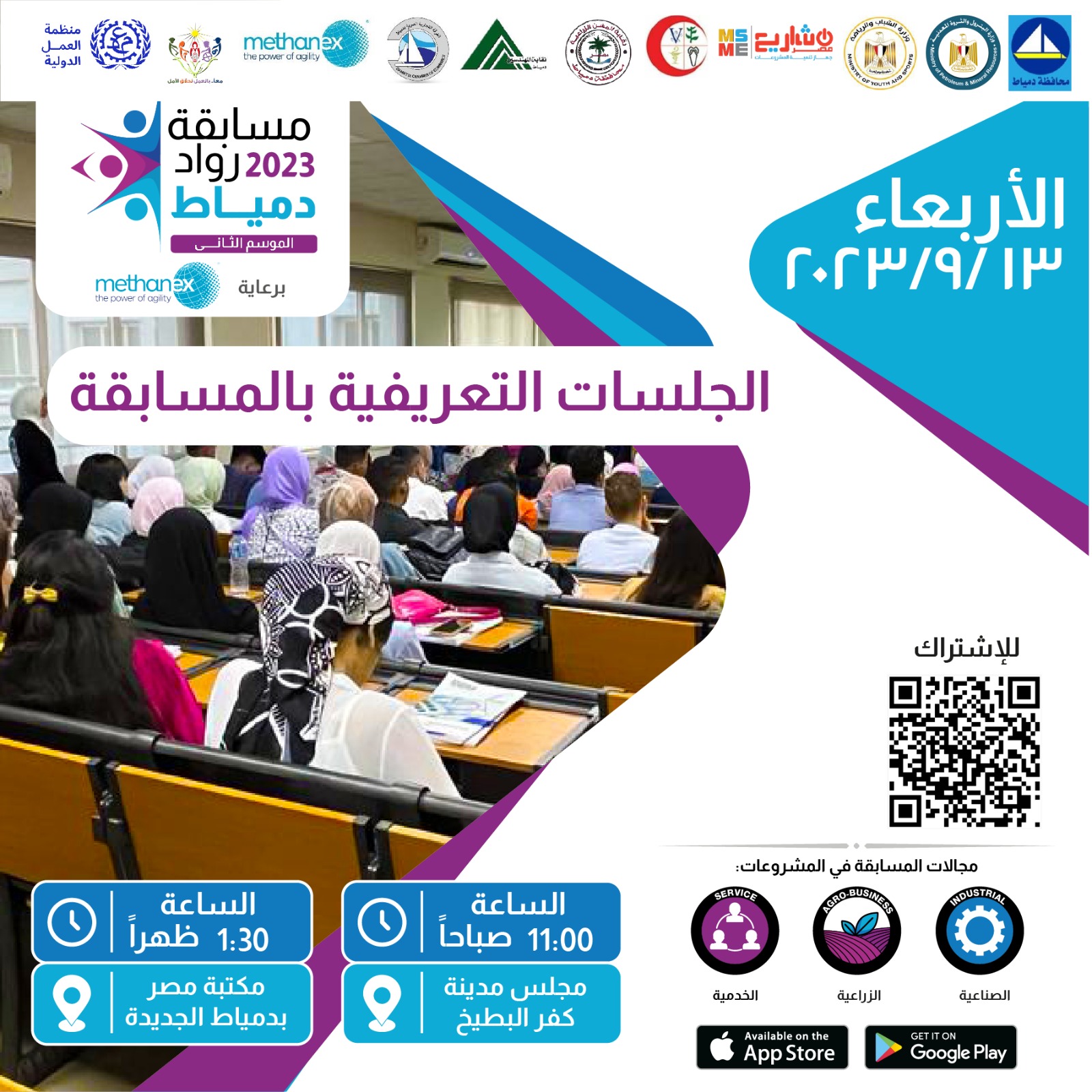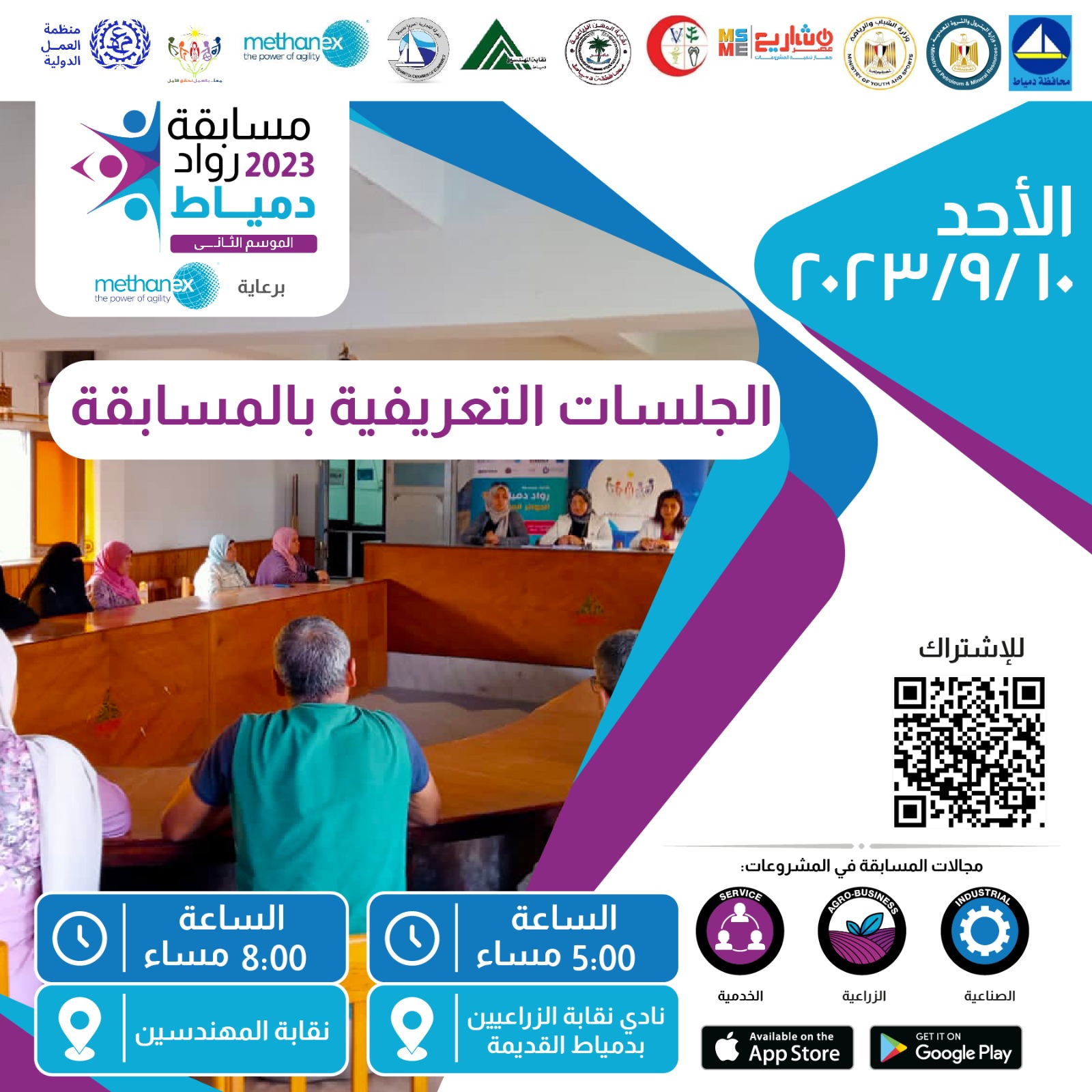أطلقت وزارة الشباب والرياضة من خلال الإدارة المركزية لتمكين الشباب(الإدارة العامة للمبادرات الشبابية) بالتعاون مع منظمة العمل الدولية وبرعاية شركة ميثانيكس ضمن مشروع وظائف لائقة لشباب مصر، الجلسات التعريفية الخاصة بمسابقة " رواد دمياط ٢٠٢٣ " في نسختها الثانية لدعم رواد الأعمال من الشباب بمحافظة دمياط وذلك خلال الفترة من (١٠-١٣) سبتمبر الجاري.
