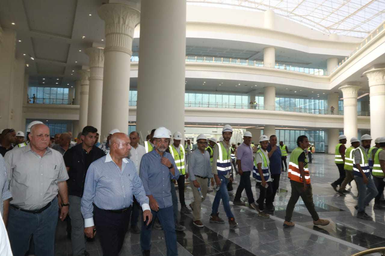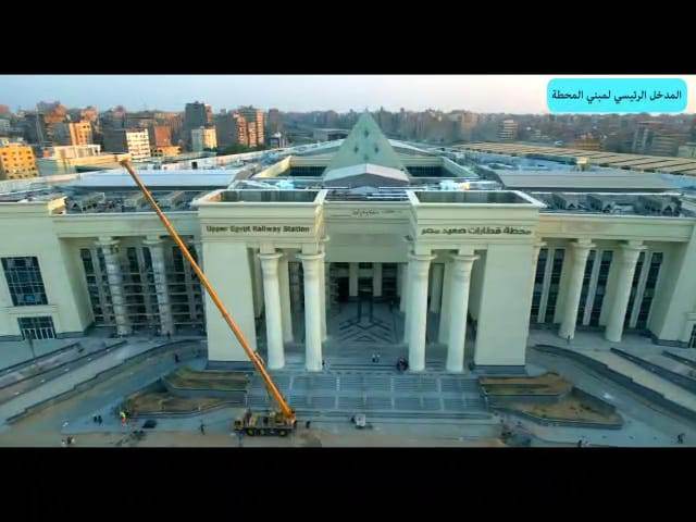 بدأت الجولة بمتابعة جاهزية مبني المحطة الرئيسي المقام علي مساحة 31.000 م2 والذي يتكون من دور بدروم سيستخدم كجراج بسعة 250 عربة ودور أرضى يحتوى علي جزء تجاري ضمن مول تجاري متكامل بالدور (الأول - الثاني) وأماكن ادارية بالدور الارضي خاصة بالعاملين بالمحطه بالإضافة إلي 28 شباك تذاكر وكذلك دورات المياه ومنطقة الهرم الزجاجي بالبهو الرئيسي للمحطة والذي يبلغ ارتفاعه 40متر بالاضافة الى الدورين الاول والثاني للمحطة والذي يشمل محلات تجارية ومناطق استثمارية