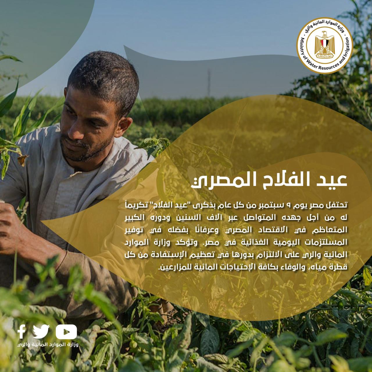 توجه الدكتور هانى سويلم وزير الموارد المائية والري بالتهنئة لجموع الفلاحين المصريين ، بمناسبة الإحتفال بعيد الفلاح والذي يأتي يوم ٩ سبتمبر من كل عام ، مؤكدا أن هذا الإحتفال يأتي تكريما للفلاح المصرى على جهوده المتواصلة لخدمة الاقتصاد المصري وتحقيق الأمن الغذائي على مر السنين .