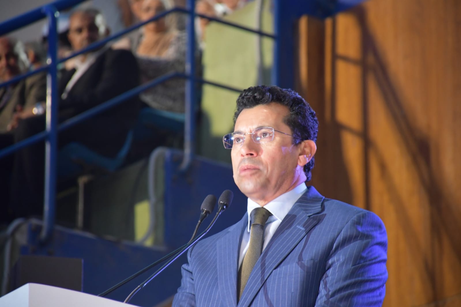 شهد الدكتور أشرف صبحي، وزير الشباب والرياضة، د. والدكتور أيمن عاشور، وزير التعليم العالي والبحث العلمي، حفل افتتاح أسبوع شباب الجامعات والمعاهد العليا المصرية في نسخته الثالثة عشرة في جامعة حلوان، والذي يُعقد خلال الفترة من 8 وحتى 14 سبتمبر الجاري، تحت شعار "الجمهورية الجديدة.. حلم وطن"، وبرعاية الدكتور مصطفى مدبولي، رئيس مجلس الوزراء.