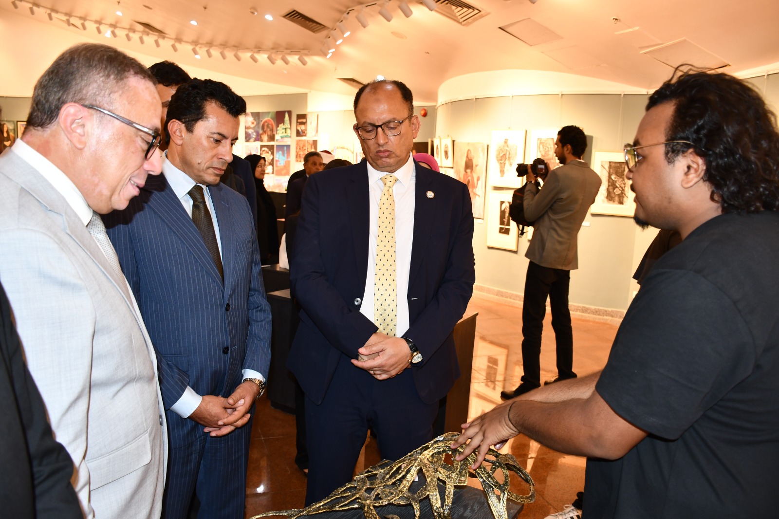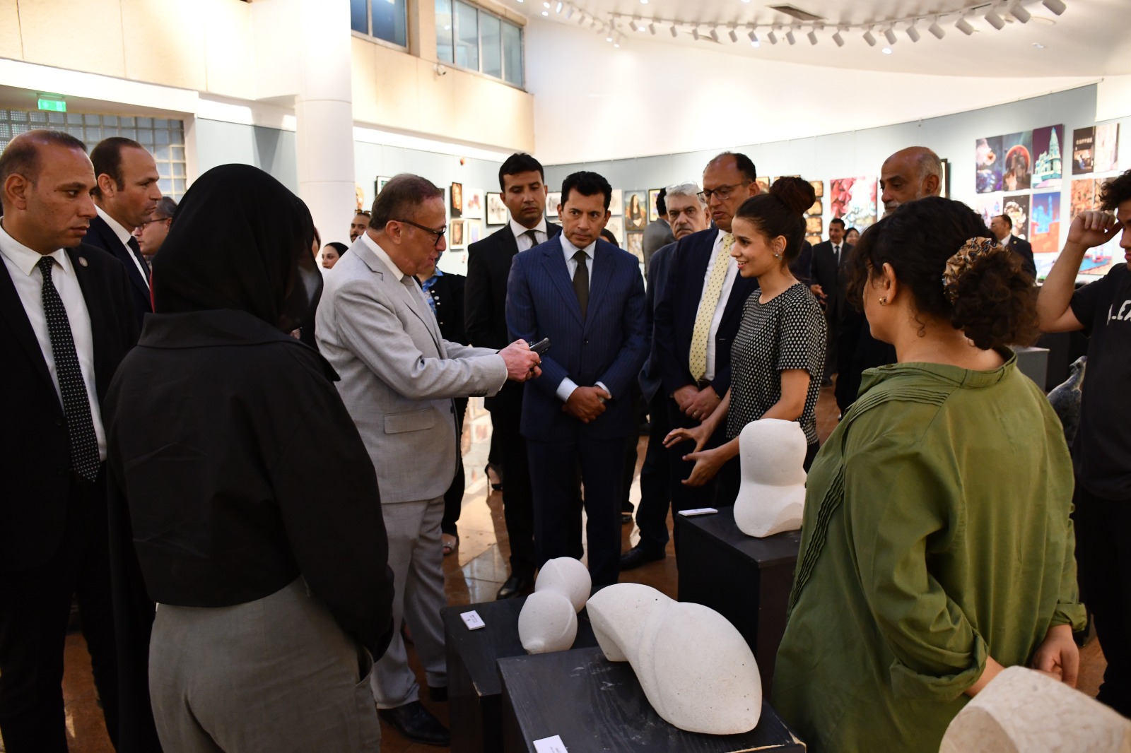 افتتح الدكتور أشرف صبحي، وزير الشباب والرياضة، والدكتور السيد قنديل، رئيس جامعة حلوان، بمشاركة عدد كبير من رؤساء الجامعات المصرية، المعرض الفني لطلاب كليات الفنون الجميلة والتربية الفنية والفنون التطبيقية بقاعة المرصد بمجمع الفنون والثقافة، وذلك على هامش افتتاح فعاليات أسبوع شباب الجامعات والمعاهد العليا المصرية الثالث عشر.