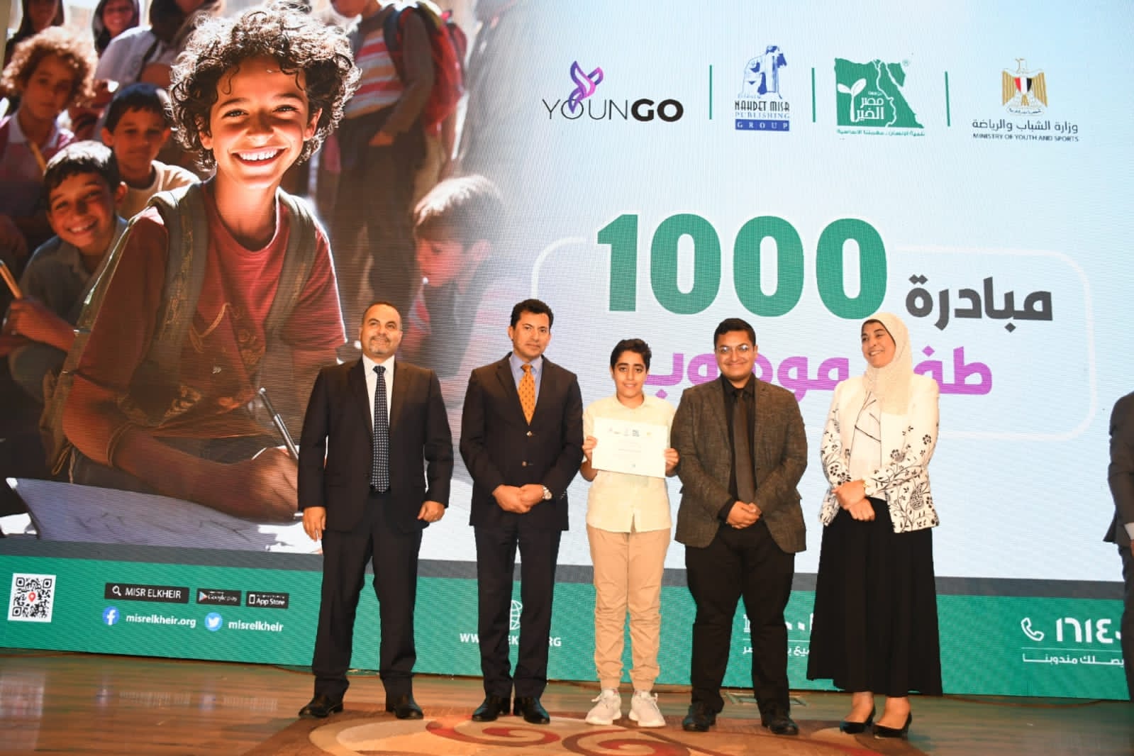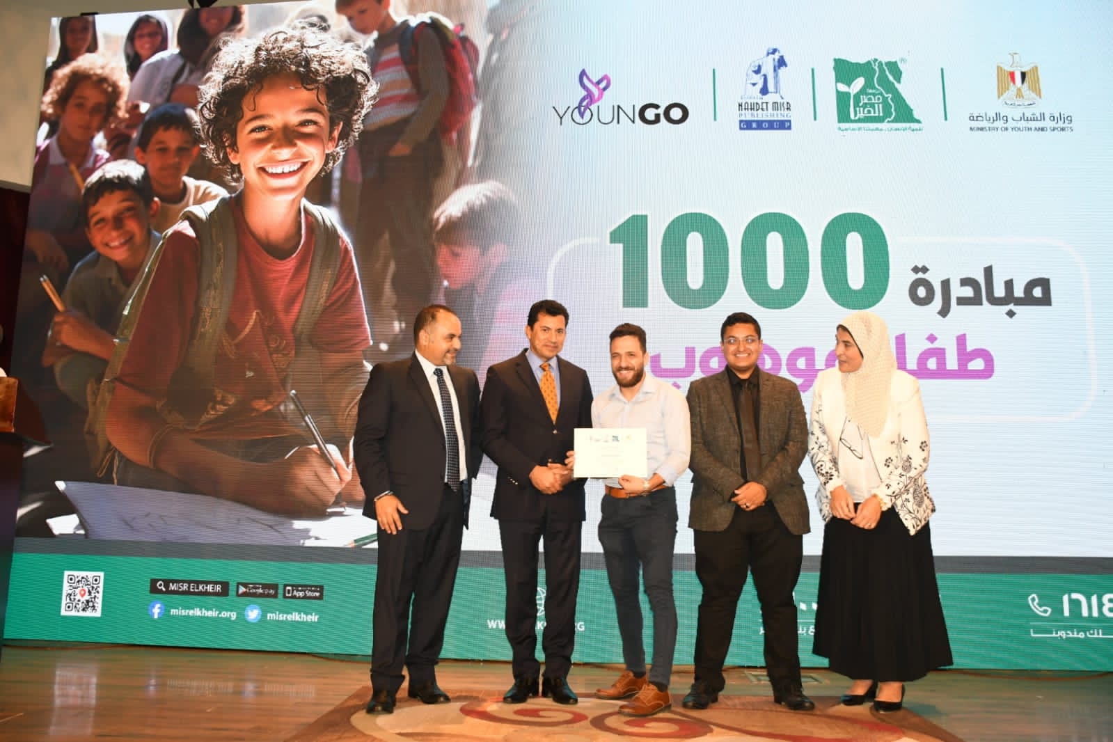 كرم الدكتور أشرف صبحي وزير الشباب والرياضة، الفائزين من مبادرة ١٠٠٠ طفل موهوب وذلك بمركز تدريب المنتخبات القومية بالمعادى، والتى تم عقدها لتعليم الأطفال الفنون، وقامت بتنفيذها الإدارة المركزية لتنمية النشء بوزارة الشباب والرياضة، وذلك بالتعاون مع كل من مؤسسة نهضة مصر ومصر الخير ومنصة YounGo School وذلك علي يد مدربين متخصصين في مجالات الفنون.