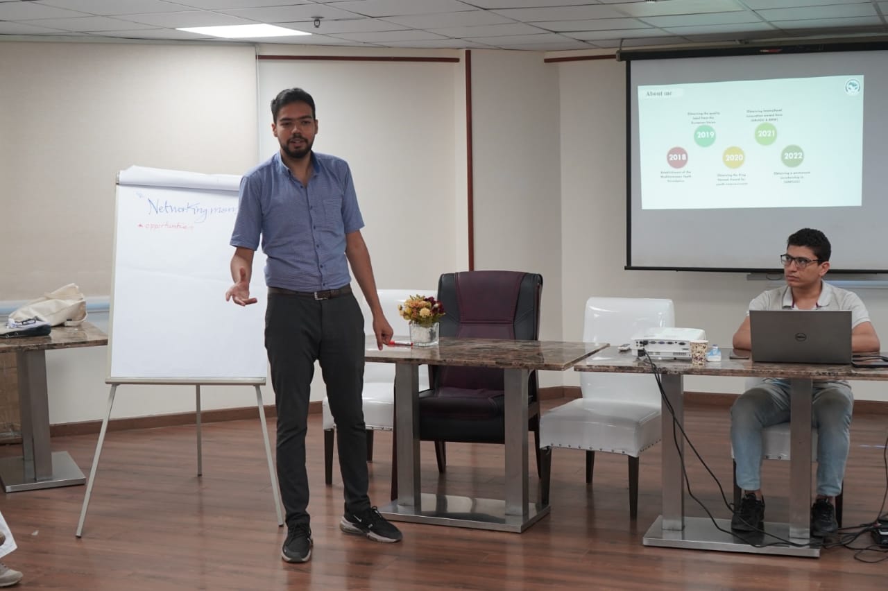 واختتمت الورشه الثالثه ، التي أدارها يوسف عروج مؤسس ، رئيس مجلس أمناء مؤسسة شباب المتوسط للتمنية ، بالتدريب على مهارات التواصل والعرض الفعال .