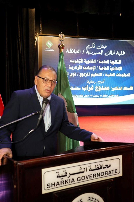 جاء ذلك خلال مشاركته بإحتفالية تكريم أوائل الشهادات العامة والفنية والأزهرية للعام الدراسي 2022 - 2023 والتي أقامتها المحافظة بالتعاون مع مديرية التربية والتعليم والمنطقة الأزهرية بالشرقية بقصر ثقافة الزقازيق.