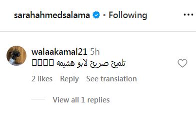 وحاز المنشور على إعجاب متابعي الفنانة سارة أحمد سلامة، وعلق أحد جمهورها قائلًا: "تلميح صريح لأبو هشيمة".
