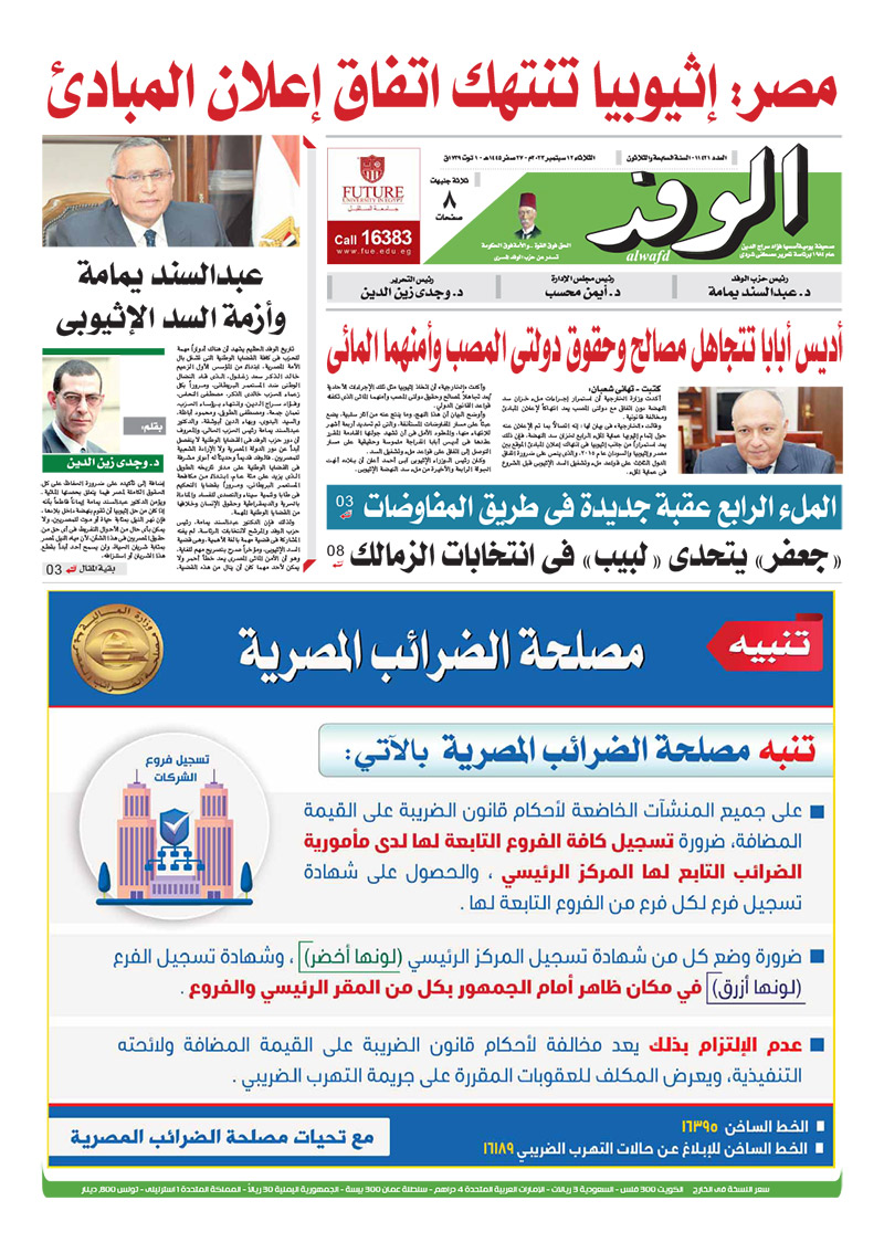 اقرأ غدًا بالوفد.. مصر: إثيوبيا تنتهك اتفاق إعلان المبادئ