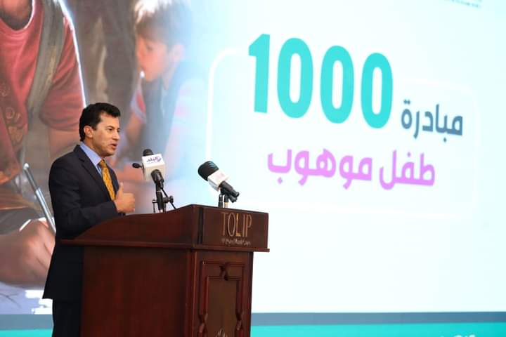جاءت كلمة أشرف صبحي فيخلال الاحتفالية التي نظمتها الوزارة مساء أمس بالتعاون مع مؤسسة "مصر الخير"، ودار نهضة مصر للنشر في ختام مبادرة 1000 طفل مبدع، وذلك بمركز تدريب المنتخبات القومية بالمعادى ، والتى تم عقدها لتعليم الأطفال الفنون ، وقامت بتنفيذها الإدارة المركزية لتنمية النشء بوزارة الشباب والرياضة ، وذلك بالتعاون مع كل من دار نهضة مصر للنشر و مؤسسة مصر الخير ومنصة YounGo Schoolوذلك على يد مدربين متخصصين.