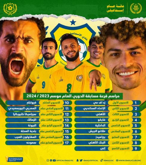 جدول مواعيد مباريات الإسماعيلي بالدوري المصري
