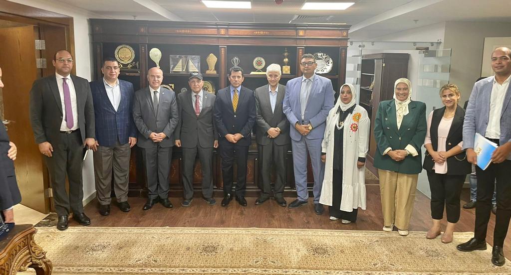 اللواء اسماعيل الفار رئيس قطاع الشباب ، الدكتورعبدالله الباطش مساعد الوزير للشباب ، و دكتور عمرو حداد مساعد الوزير للتنميه الرياضه ؛ دكتورة رانيا سامي مدير العلاقات الدوليه للوزاره.
