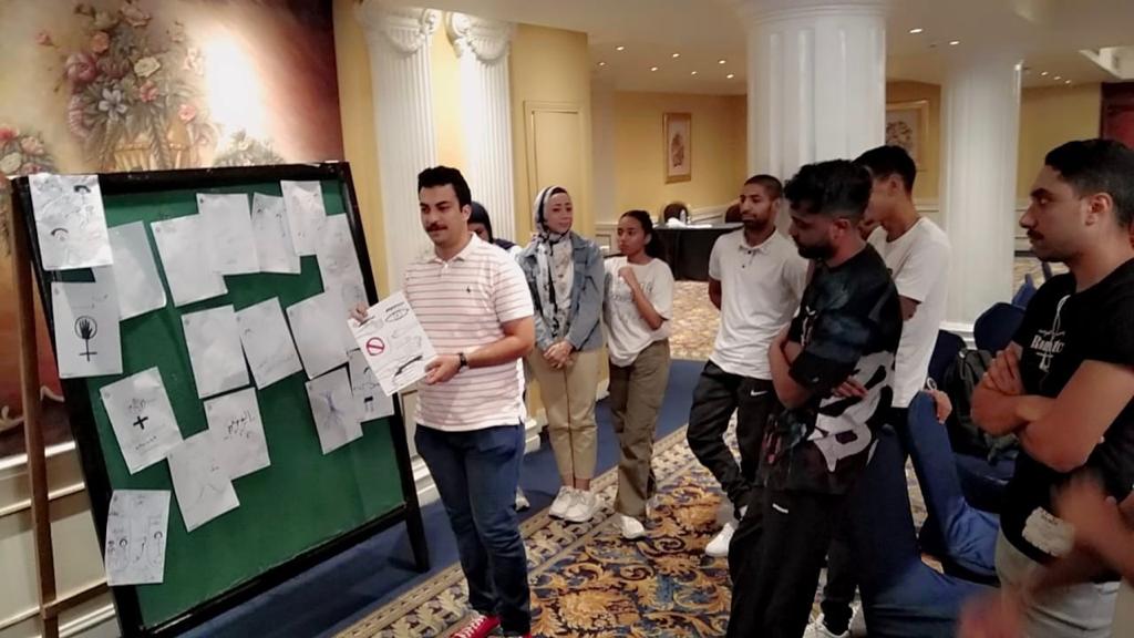 كما قامت المدربة بتقسيم المشاركين/ات إلى مجموعات لطرح مقترحاتهم حول الحد من العنف ضد المرأة مجتمعيا، و دورهم المهم فى ذلك.