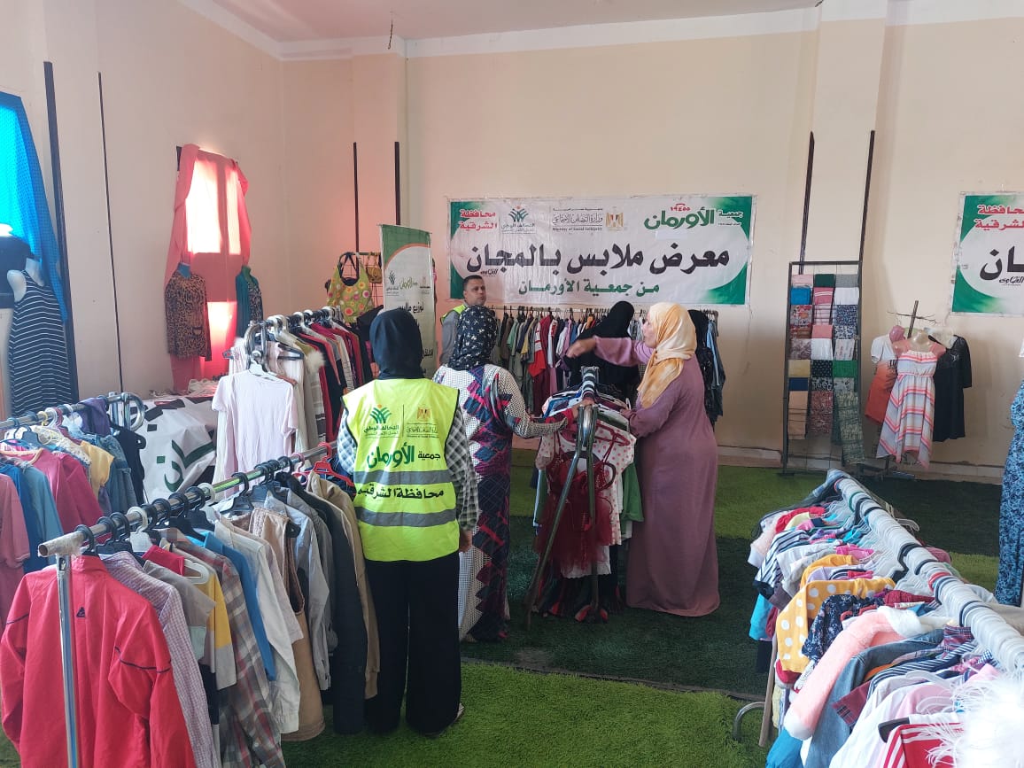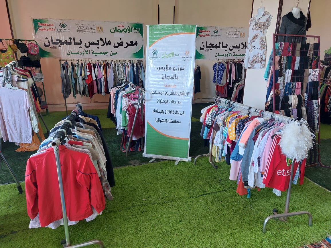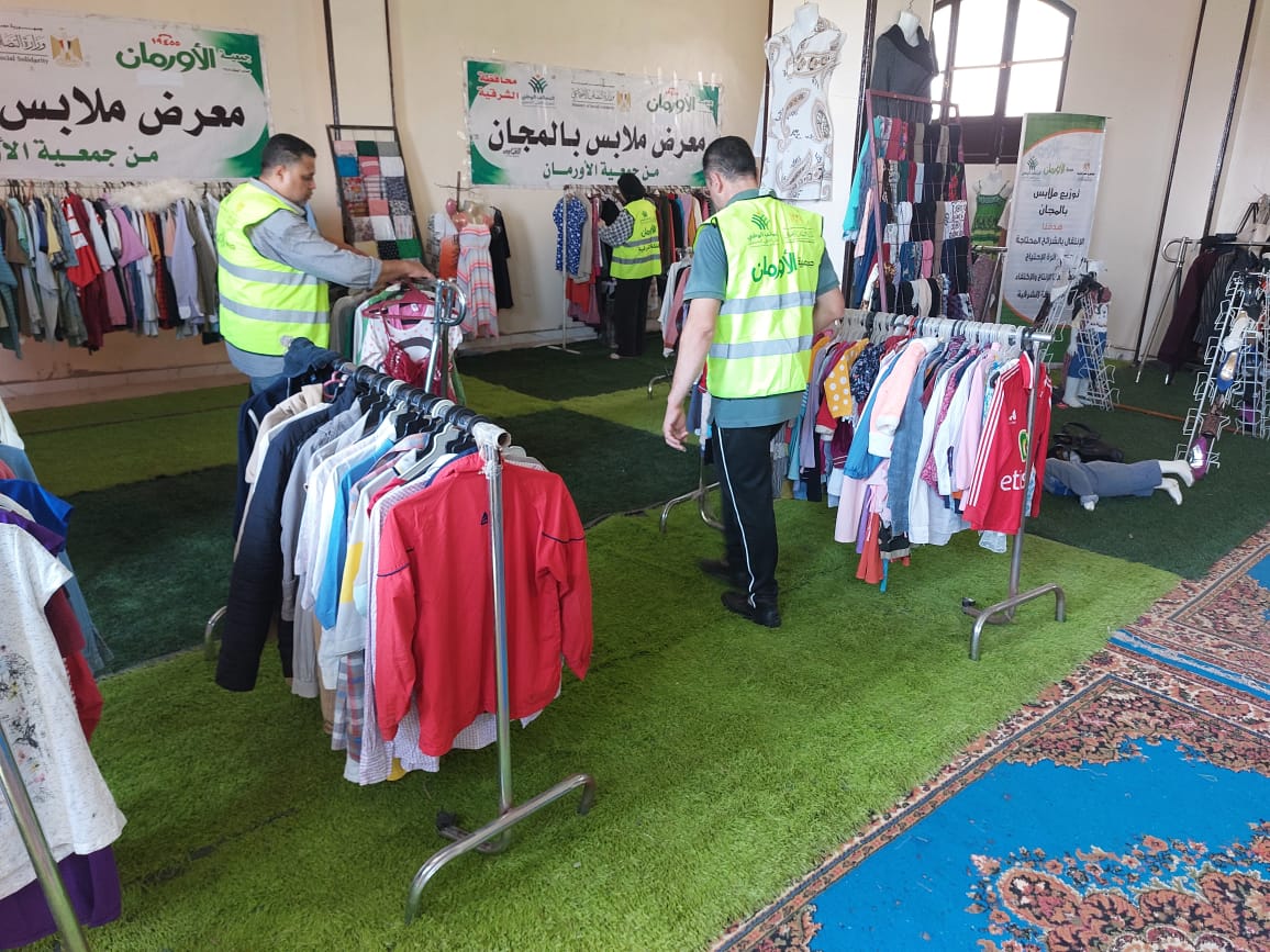 الشرقية: معرض لتوزيع الملابس الجديدة بالمجان علي الأسر الأولي بالرعاية