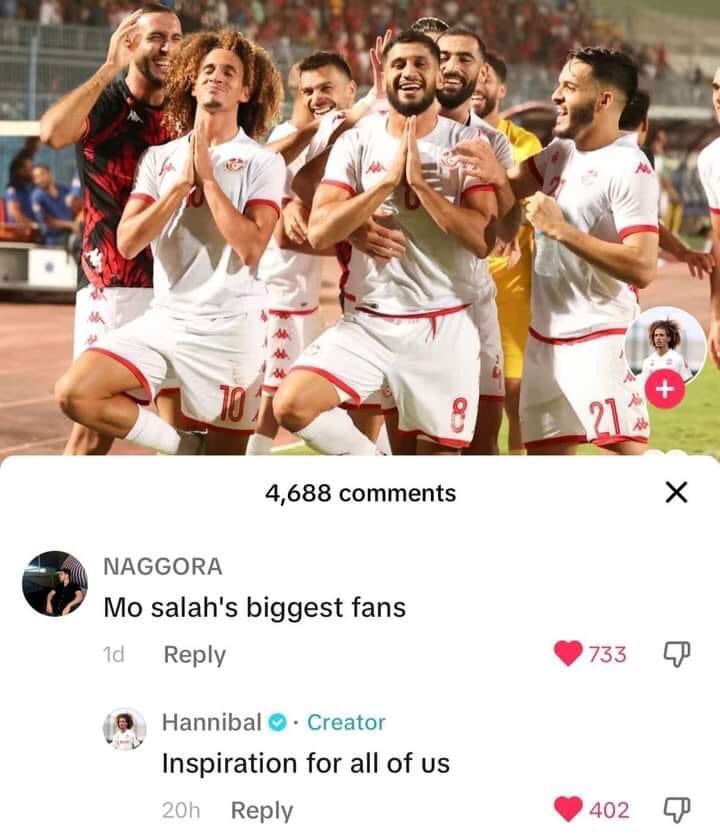 ليرد حنبعل مجبري على أحد الجماهير عبر حسابه عن محمد صلاح وكتب: "مصدر إلهام لنا".
