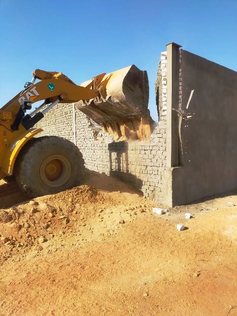 وفي مركز مشتول السوق تم ازالة سور بالدبش الابيض والأسمنت أقيم على الأرض الزراعية بالمخالفة، بقرية الجيزاوية دون الحصول على تصريح من الجهات المختصة.