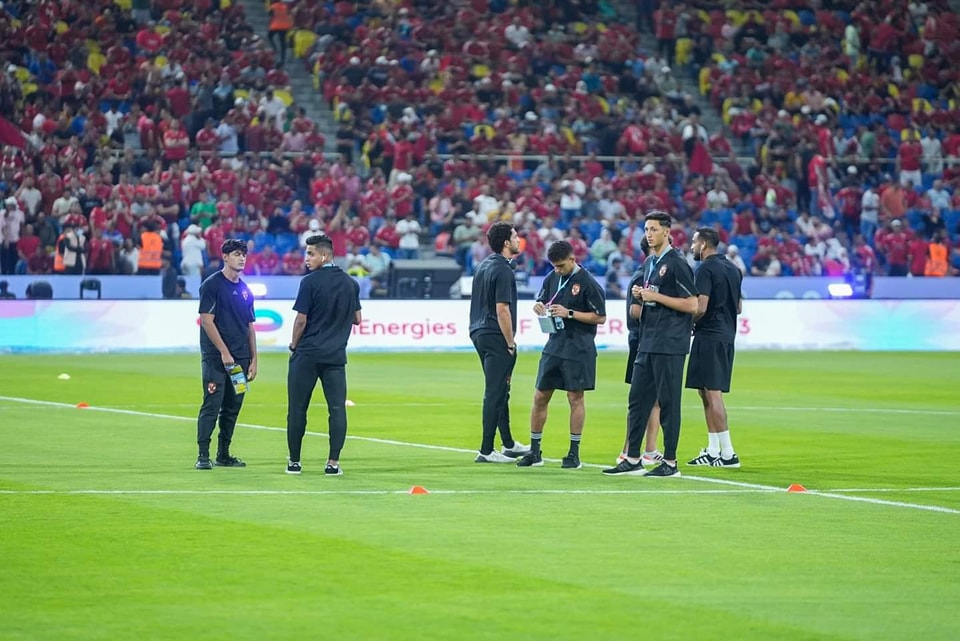 السوبر الأفريقي.. الجهاز الفني للأهلي يُعاين أرض الملعب قبل مواجهة اتحاد العاصمة(صور)
