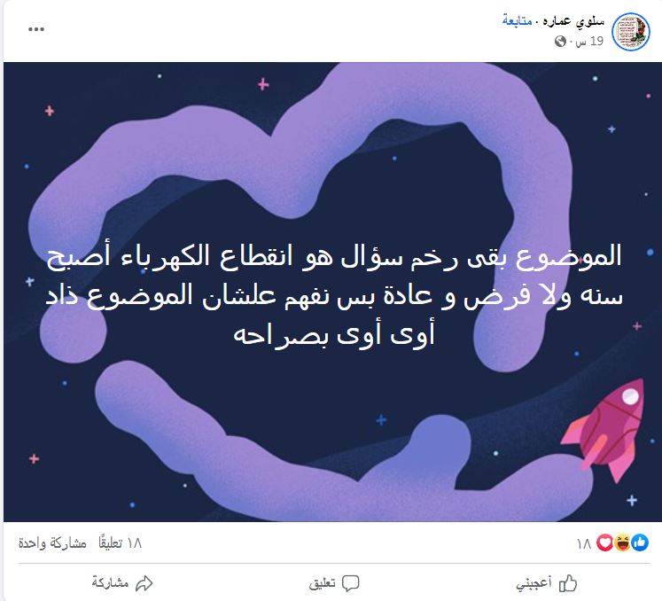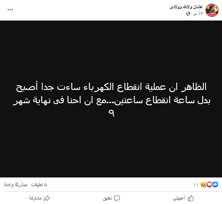 ووجه أديب رسالة لمجلس الوزراء قائلًا: "مش عاوز طبطبة عليا ومتخففش عني الحكاية.. قولي بكل صراحة إحنا مش هنقدر نرجع الكهرباء دلوقتي، وإن النور ممكن يقطع ساعتين".
