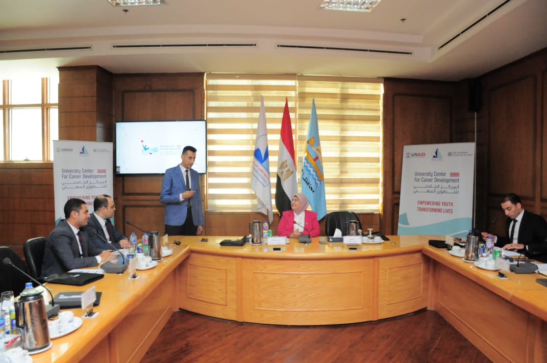 وقدم مدير المركز الجامعي للتطوير المهني بجامعة كفر الشيخ الدكتور علاء غازي عرضًا عن أنشطة وخدمات المركز الجامعي للتطوير المهني بالجامعة والتي يقدمها المركز للطلاب والخريجين وتتمثل في خدمات الإرشاد والتطوير المهني، والتدريب وتنمية المهارات، فضلًا عن خدمات التوظيف.