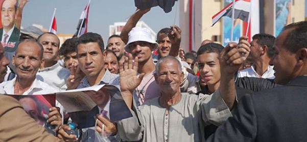 أهالى قرية سدس الأمراء بمحافظة بنى سويف يحتشدون لاستقبال الرئيس السيسى