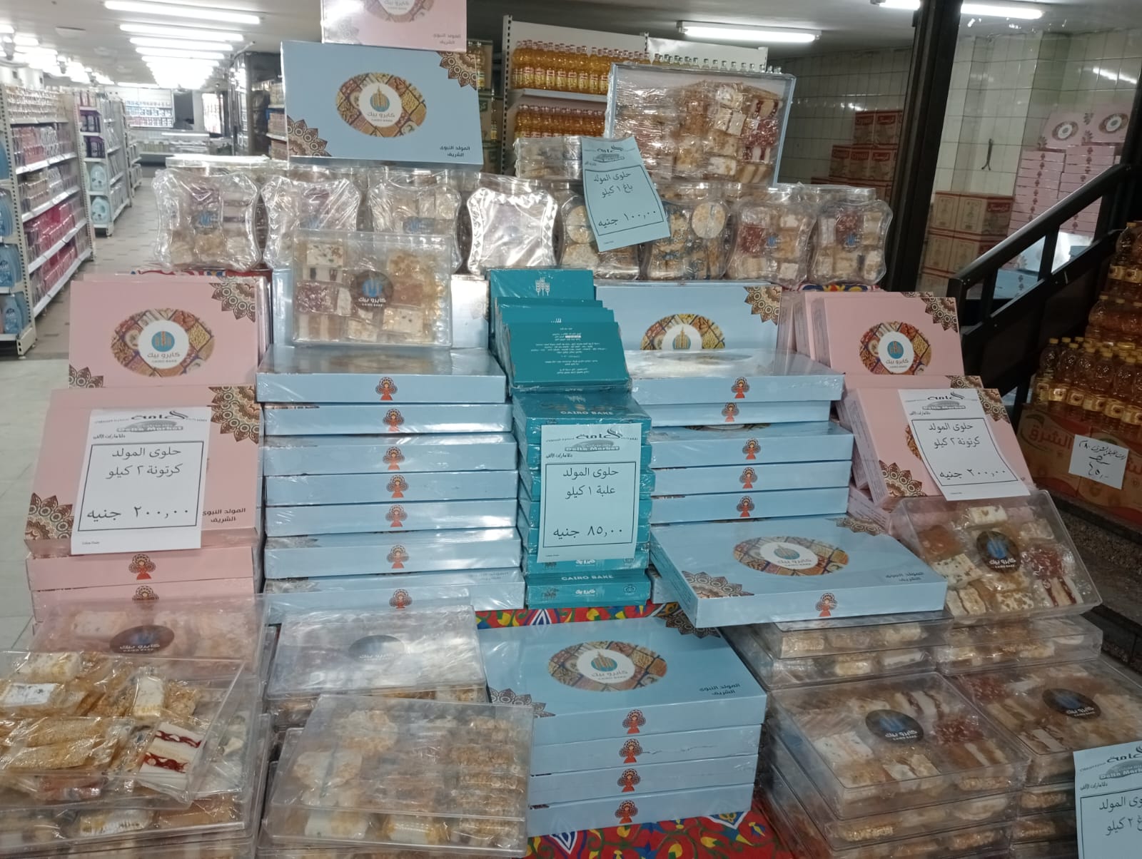 وأضاف أن المجمعات الاستهلاكية قد تم ضخ كميات كبيرة من حلوى المولد بها بعبوات تبدأ من 1 كيلو مشكل بسعر 100 جنيه، و2 كيلو مشكل بسعر 200 جنيه للعبوة.