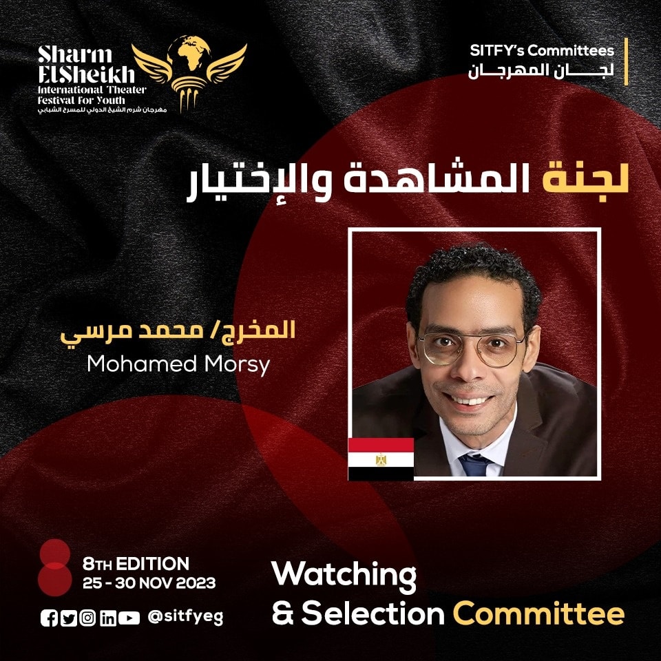 والمخرج محمد مرسي وهو مدير فرقة مسرح الإسكندرية بالبيت الفني للمسرح منتدبا من مركز الحرية للإبداع، ومشرف على مسرح بيرم التونسي، وليسيه الحرية بالإسكندرية منذ عام ٢٠٢٢ وعضو نقابة المهن التمثيلية شعبة الإخراج المسرحي، وقام بالتحكيم في العديد منها المهرجانات منها مهرجان اسكندرما، وكذلك مهرجان نوادي المسرح لأكثر من دورة.