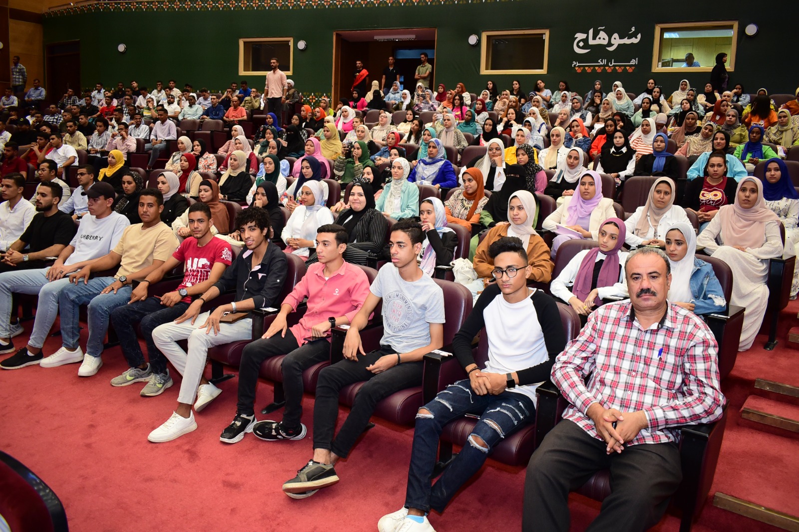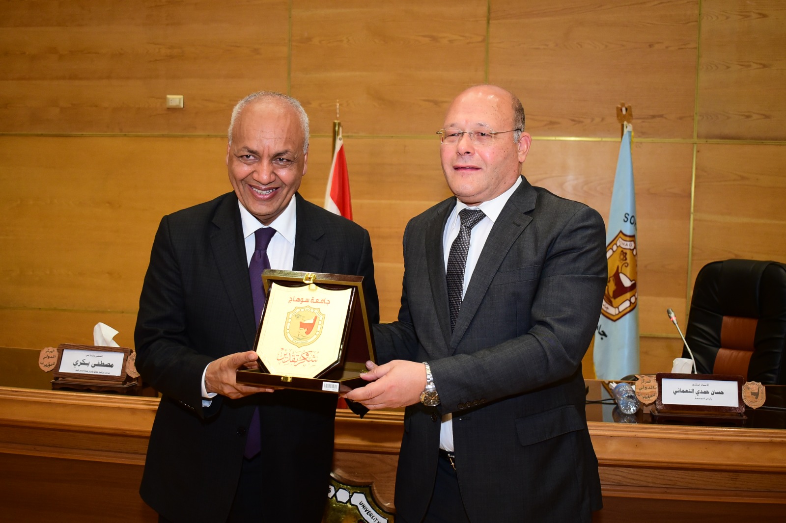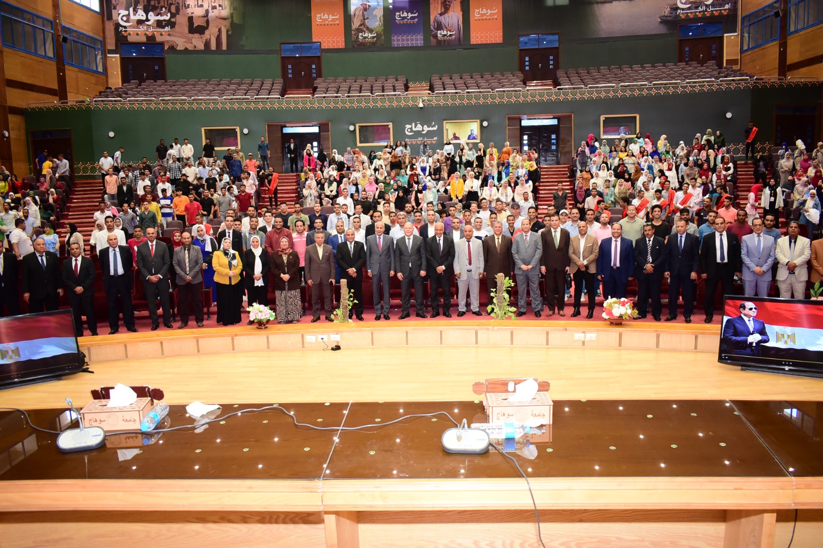 نظمت جامعة سوهاج ندوة بعنوان " الموقف الراهن والتحديات التي تواجه مصر"، والذي حاضر بها الكاتب الصحفي والإعلامي الكبير مصطفى بكري، رئيس تحرير جريدة "الأسبوع"، وعضو مجلس النواب، بحضور الدكتور عبد الناصر يس والدكتور خالد عمران نواب رئيس الحامعة والمحاسب أشرف القاضي آمين عام  الجامعة، وعمداء الكليات، عدد من أعضاء هيئة التدريس و الطلاب، و ذلك بقاعة المؤتمرات الدولية بالمقر الجديد للجامعة.