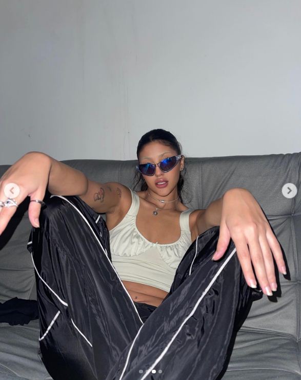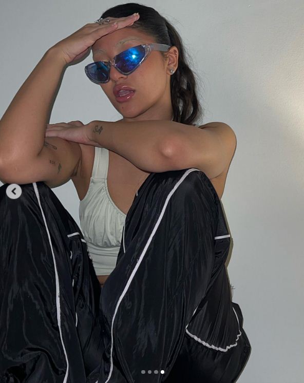 وبدت إسراء رخا بإطلالة جريئة، مرتدية بنطال فضفاض باللون الأسود ومُزين بخطوط على الجانبين باللون الأبيض، ونسقت عليه كربو توب باللون البيج، مكشوف الصدر والبطن، مما عكس جرائتها وأنوثتها.