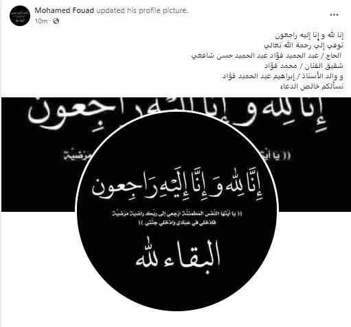 شقيق الفنان محمد فؤاد، ووالد الأستاذ / إبراهيم عبدالحميد فؤاد، نسألكم خالص الدعاء".