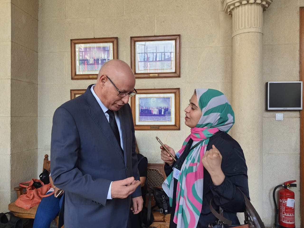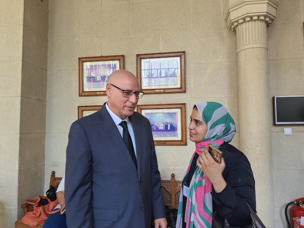 السفير خطابي مع محررة الوفد بالجامعة العربية