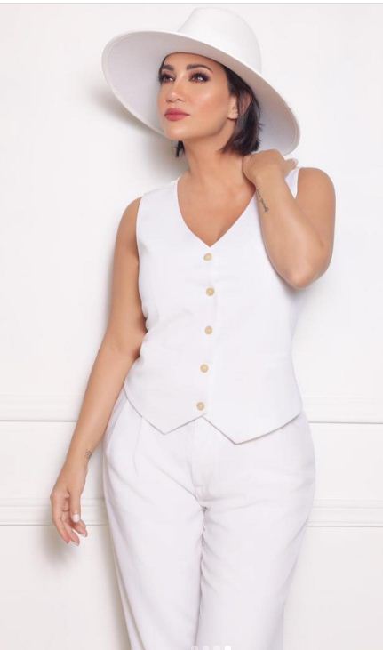 وظهرت ديانا حداد بإطلالة بدلة بيضاء تنتمي للاجواء كلاسيكية لتتزين بالأزرار من الأمام عكست إطلالتها قوامها الممشوق.