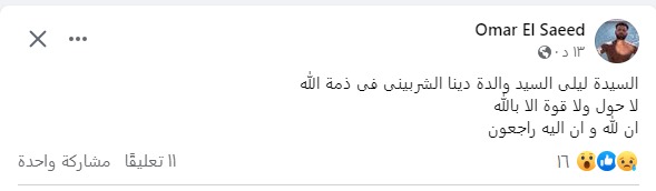 نشر الفنان عمرو السعيد منشورًا عن وفاة والدة دينا الشربينى قائلًا: "السيدة ليلى السيد والدة دينا الشربينى فى ذمة الله..لا حول ولا قوة الا بالله"، إذْ رحلت والدة دينا بعد 5 أشهر من وفاة والدها.