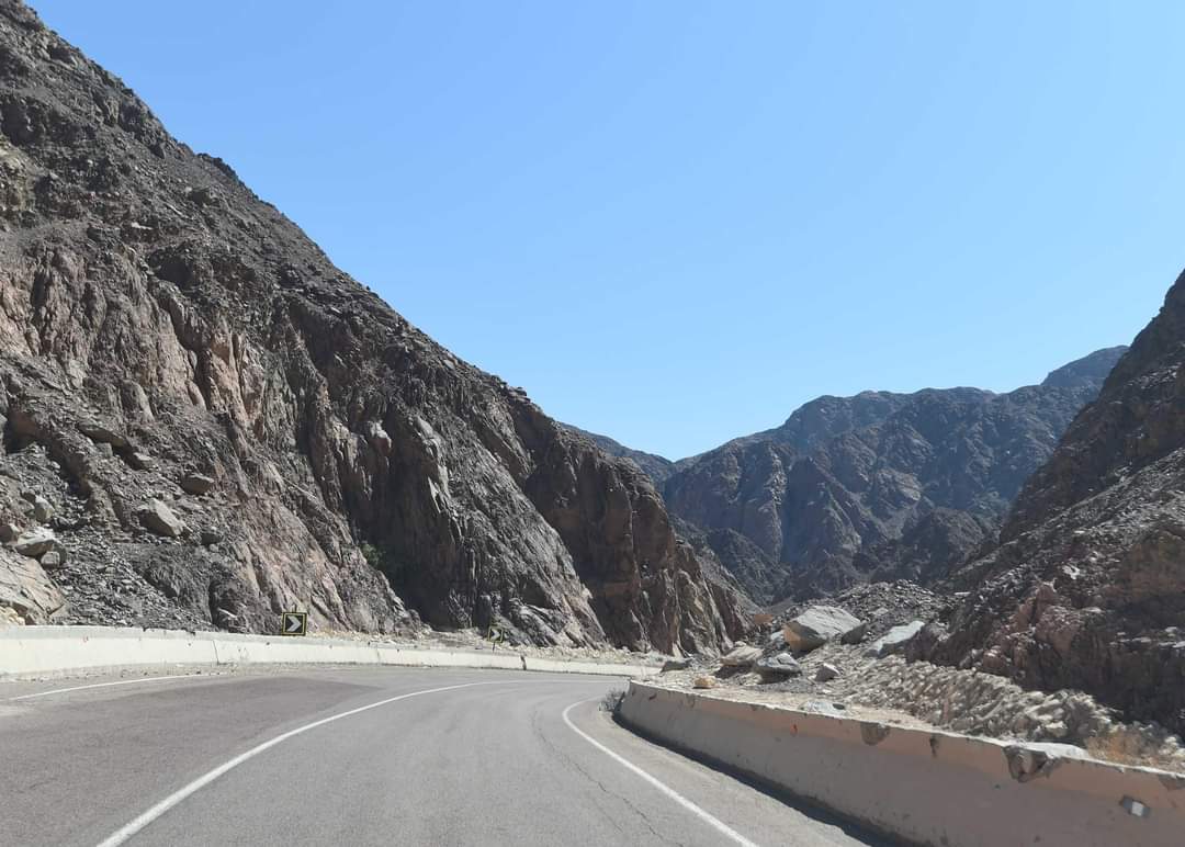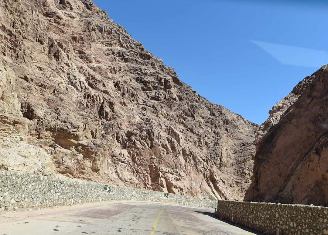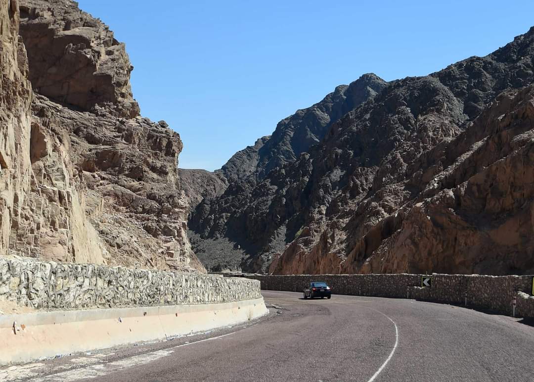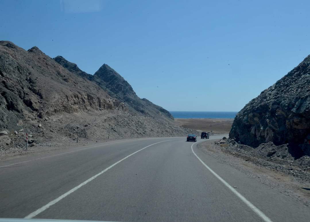 في طريقه إلى مدينة نويبع تفقد الدكتور مصطفى مدبولي، رئيس مجلس الوزراء، طريق "شق الثعبان"، وطريق "طابا - نويبع" والمنشآت والمخيمات السياحية القائمة عليه، وذلك ضمن جولته التي يقوم بها اليوم في محافظة جنوب سيناء، برفقة عدد من الوزراء والمسؤولين المعنيين.