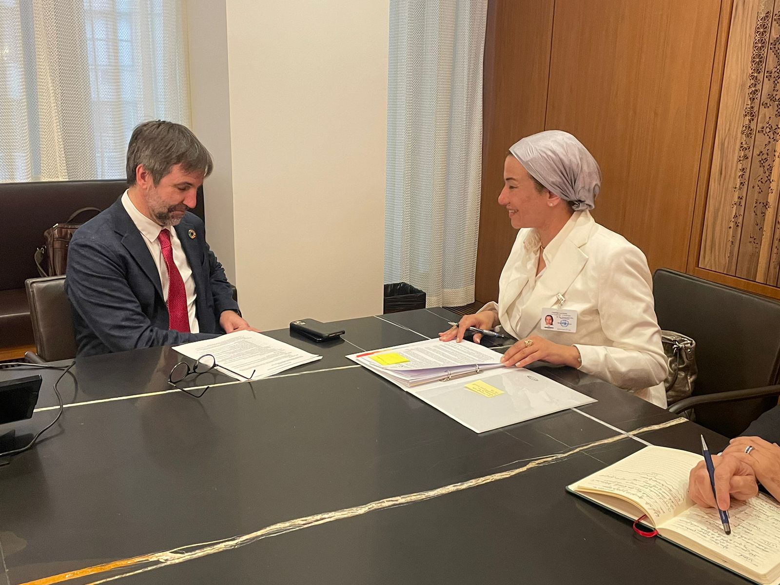 شاركت الدكتورة ياسمين فؤاد وزيرة البيئة المنسق الوزارى ومبعوث مؤتمر المناخ فى الاجتماع الأول للدكتور سلطان الجابر الرئيس المعين لمؤتمر COP28 مع الفرق الثنائية من وزراء البيئة والمناخ ، حيث تشارك مع وزير البيئة الكندي السيد ستيفن جيلبولو، وذلك لمناقشة آليات تسيير المفاوضات لأجندة المناخ ، وسبل تنفيذ اتفاقية باريس وبروتوكول كيوتو ، حيث تضمنت الجلسة مشاورات غير رسمية على المستوى السياسي مع الأطراف والمجموعات، ضمن فعاليات الدورة ال١٥ من أسبوع نيويورك للمناخ، الذى يعقد خلال الفترة من ١٧ إلى ٢٤ سبتمبر الجارى، تحت شعار "نحن نستطيع.. نحن سنفعل"، و يُعقد سنوياً بالشراكة مع الجمعية العامة للأمم المتحدة، كمنصة دولية لإعادة التأكيد على الأهداف المناخية.