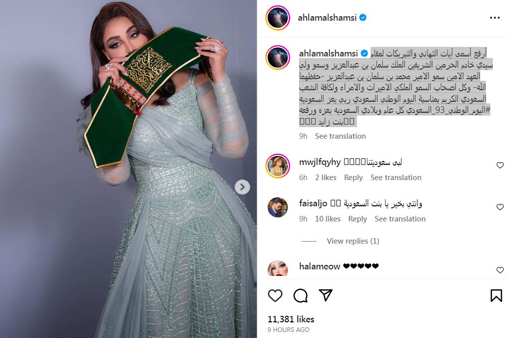 أحلام الشامسي تتألق بفستان ساحر احتفالًا باليوم الوطني السعودي