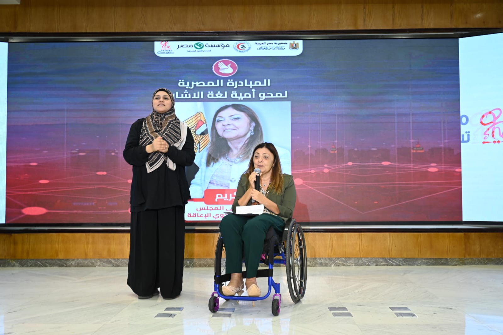شهدت الدكتورة نيفين القباج وزيرة التضامن الاجتماعي فعاليات تدشين ،"المبادرة المصرية لمحو أمية لغة الإشارة"، والتي نظمتها الوزارة في إطار الاحتفال باليوم العالمي للغة الإشارة الذي يوافق يوم 23 سبتمبر من كل عام بالتعاون مع النقابة العامة لأطباء مصر ومؤسسة «مصر للصحة والتنمية المستدامة» ومؤسسة «هى تستطيع للتنمية».
