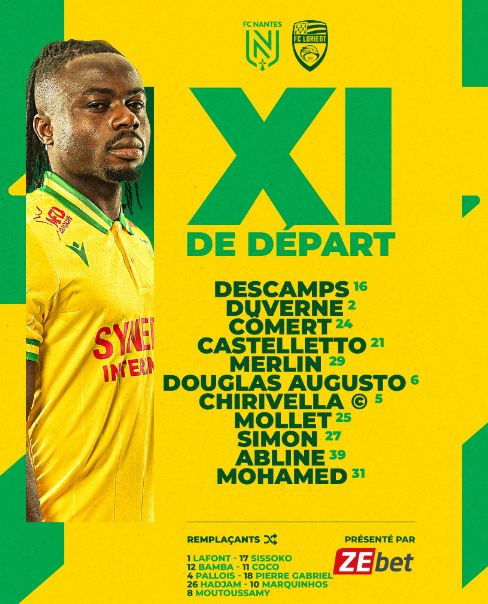 أعلن الجهاز الفني لفريق نادي نانت الفرنسي، تشكيل الفريق الذي سيخوض مواجهة نظيره لوريان، على ملعب ستاد لا البوجوار في إطار منافسات الجولة السادسة من مواجهات الدوري الفرنسي لكرة القدم بنسخة الموسم الحالي 2023 – 2024.
