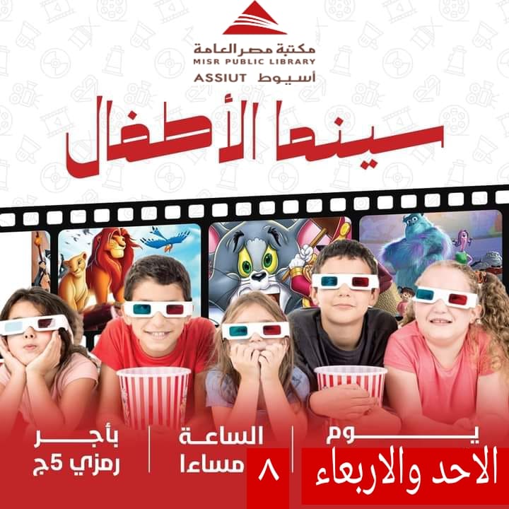 مكتبة مصر بأسيوط تنظم عروض سينمائية للأطفال يومي الأحد والأربعاء من أسبوع