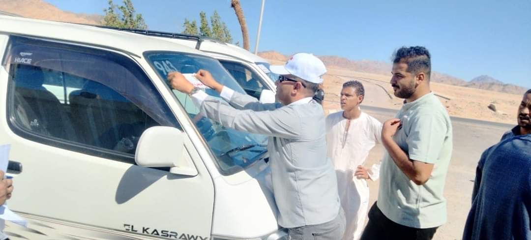 حيث تم تركيب إستيكرز لجميع السيارات المرخصة سرفيس داخلى مدينة دهب وتم تخصيص رقم كودى لكل سيارة بغرض السيطرة عليها ومحاسبة المقصرين .