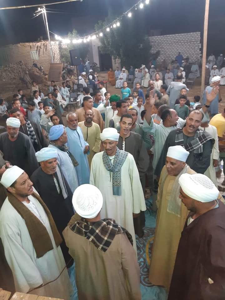 ومع حلول المساء بدأت الاحتفالات تارة بأصوات القراء للقرآن الكريم والمنشدين والمدحين على حسب عادة كل قرية.