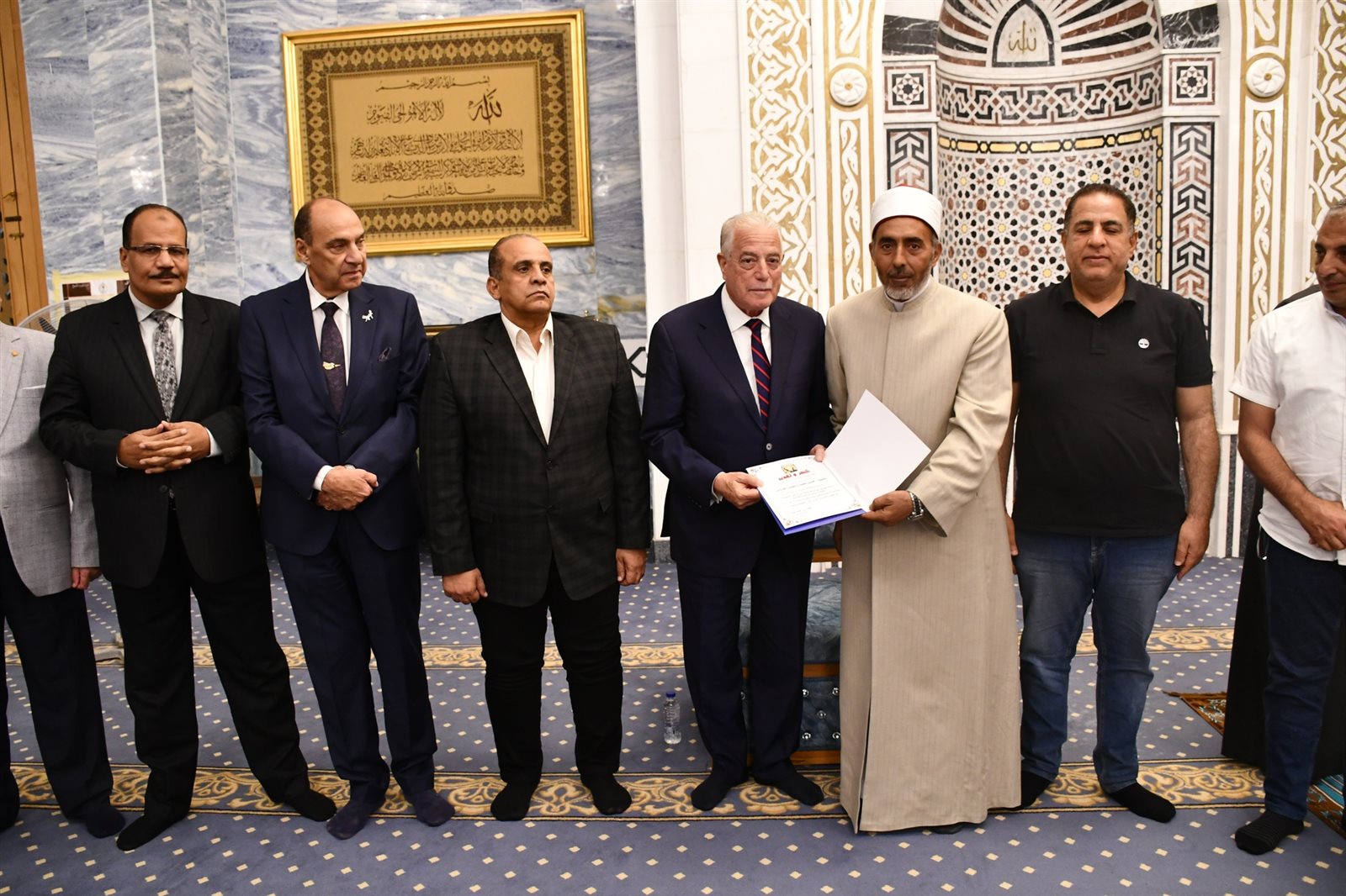الشيخ علي عمر عبد الفتاح هنو لحصوله على المركز السادس على الجمهورية في مسابقة القراءة الحرة.