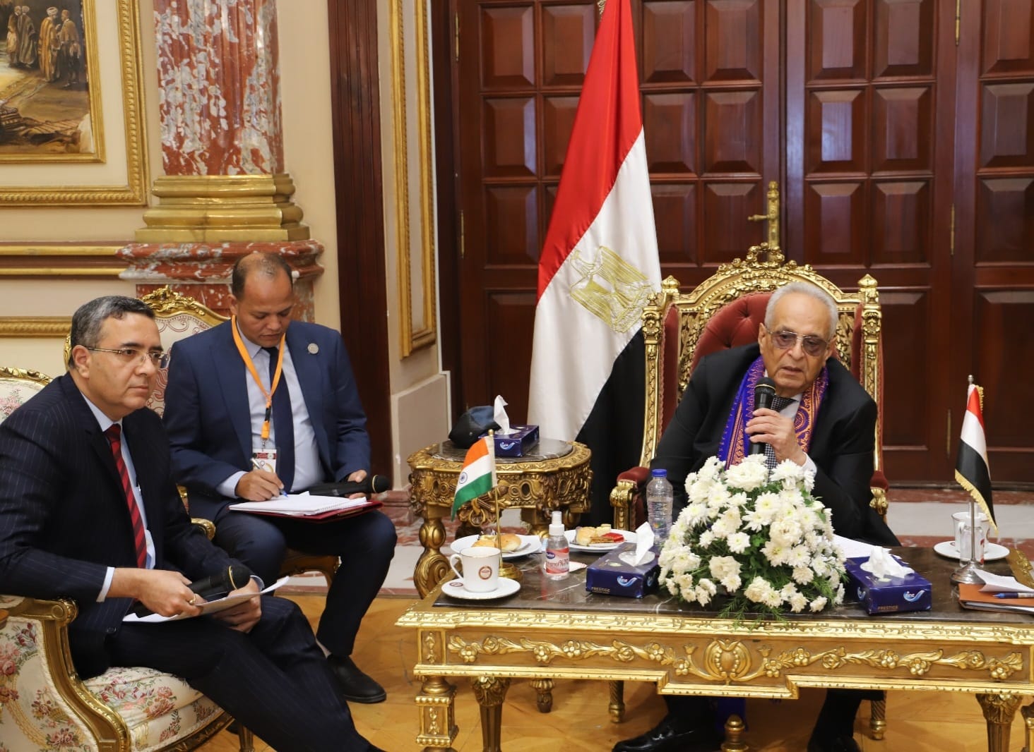 استقبل المستشار بهاء الدين أبوشقة، وكيل مجلس الشيوخ، اليوم بمقر المجلس وفدًا هنديًا برئاسة كل من إم. أبافو، رئيس المجلس التشريعى لولاية تاميل نادو السيد بيسواجيت دايمارى، رئيس المجلس التشريعى لولاية آسام.