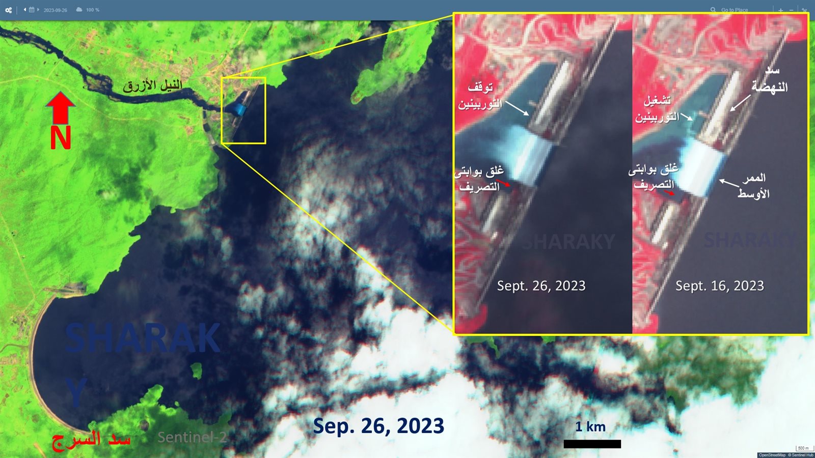 قال الدكتور عباس شراقي، أستاذ الجيولوجيا والموارد المائية بجامعة القاهرة، إن أظهرت صور الأقمار الصناعية أن تدفق المياه في سد النهضة، انخفض إلى 250 مليون متر مكعب في اليوم، بعد أن كان 300 مليون متر مكعب في اليوم بعد انتهاء التخزين الرابع في 9 سبتمبر الجاري، ومعدل التدفق الحالي أقل بنسبة 50% عن نفس اليوم من العام الماضي.