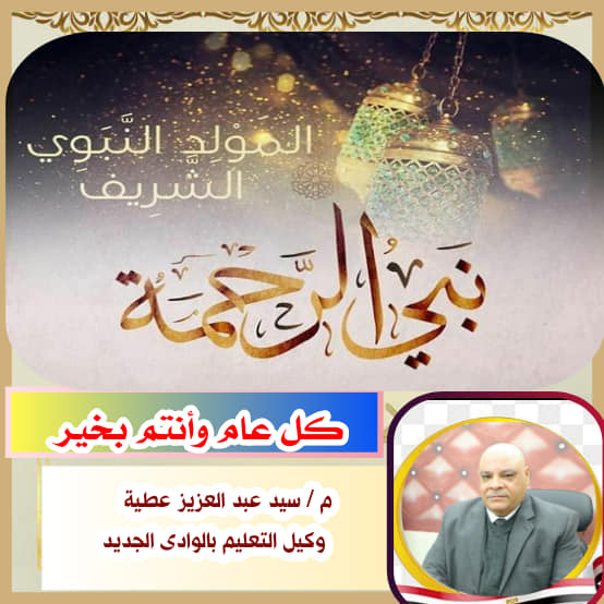 قدم المهندس سيد عبدالعزيز، وكيل التعليم بالوادى الجديد، خالص التهنئة لرئيس الجمهورية عبدالفتاح السيسي، والدكتور رضا حجازى، وزير التربية والتعليم والتعليم الفنى، واللواء دكتور محمد الزملوط، محافظ الوادى الجديد، وحنان مجدى، نائب المحافظ، وكذلك لجميع الشعب المصري ومواطني الوادى الجديد وجميع العاملين بقطاع التعليم، بمناسبة المولد النبوي الشريف وبهذه المناسبة، يتمنى المهندس سيد عبدالعزيز أن يعم السلام والسعادة قلوب الجميع، وأن يتحقق التقدم والازدهار في جميع المجالات، خاصة في مجال التعليم.