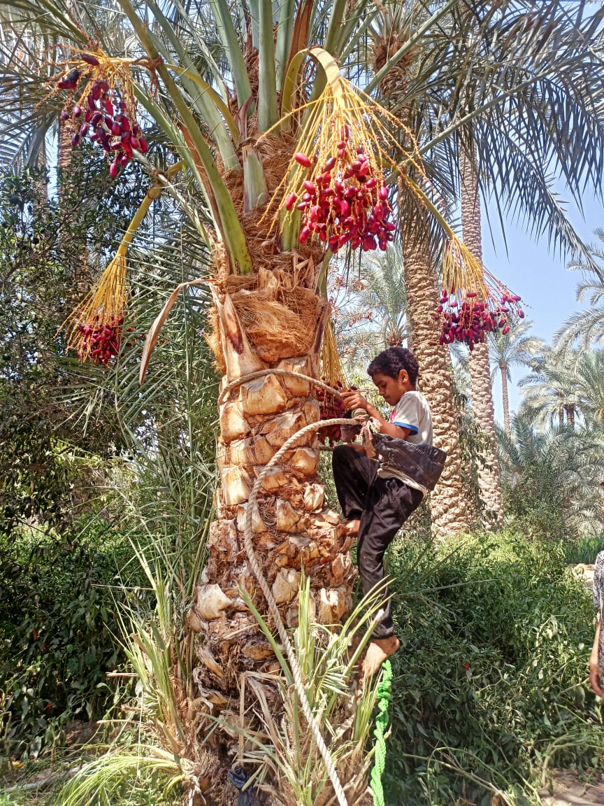 “ابن الوز عوام”، وهذا ما ينطبق على "عبدالرحمن حسن"، صاحب الثماني سنوات، ذلك الطفل الذي فتح عينيه على الحياة ليجد والده يطلع النخيل ليجمع محصول البلح.
