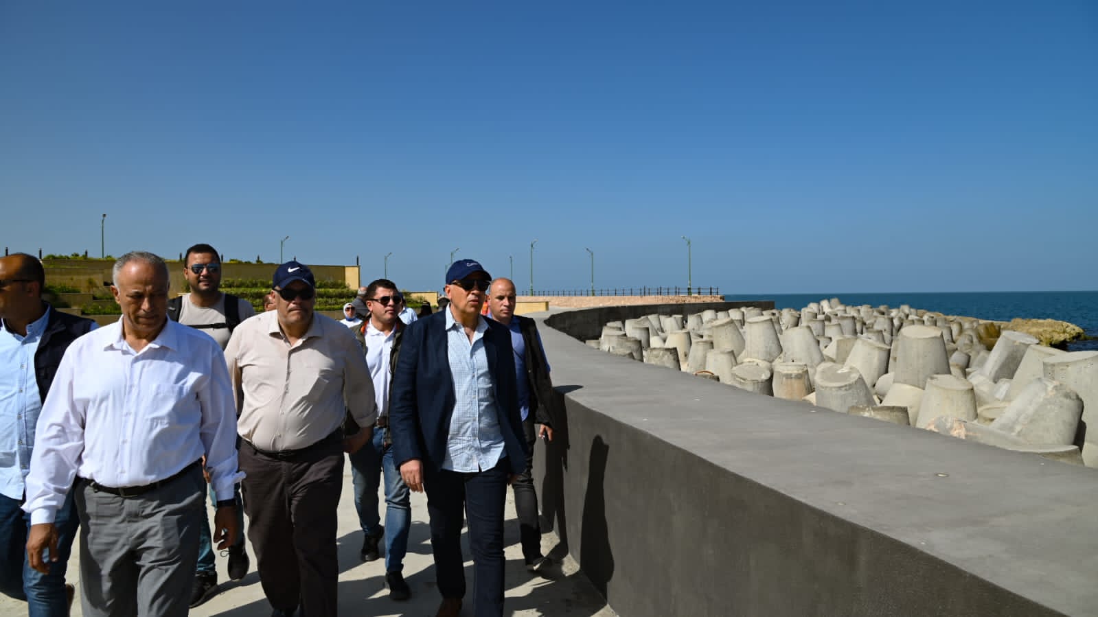 وتفقد موقع مشروع حماية ساحل الإسكندرية، من بئر مسعود حتى المحروسة بتكلفة ١٩٣ مليون جنيه، والذى يهدف لحماية شواطئ وطريق الكورنيش بالمنطقة من بئر مسعود حتى المحروسة بطول حوالى ٢ كم واستعادة الشواطئ المفقودة، نظرا لتعرض المنطقة للأمواج العالية وفقدان الكثير من الشواطئ الرملية، ويتضمن المشروع تنفيذ عدد (٢) من الحواجز الغاطسة أمام المنطقة من نادي السيارات ببئر مسعود وحتى المحروسة بطول حوالي ١٦٠٠ متر وبعرض ٤٠ مترا.