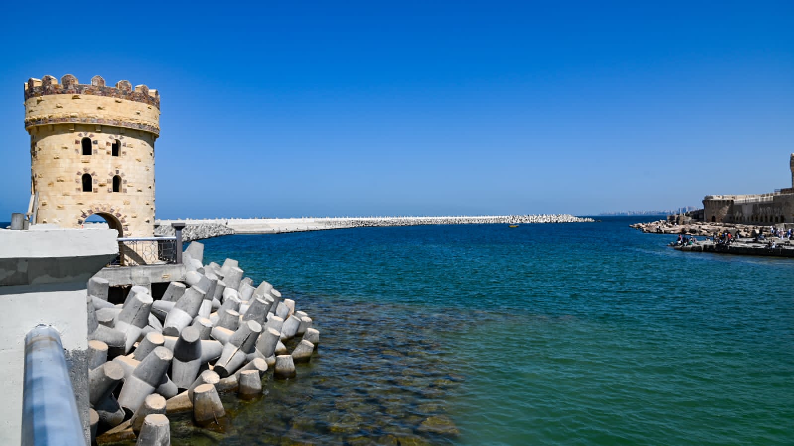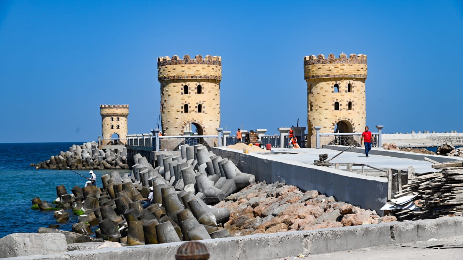 كما تفقد عملية حماية وتطوير المنطقة أمام قلعة قايتباى (مرحلة أولى) بتكلفة ٢٦٩ مليون جنيه، والتى تهدف لحماية القلعة من الأمواج العالية والنحر المستمر فى الصخرة الرئيسية المقام عليها القلعة، بالإضافة لتنمية وتطوير المنطقة أمام القلعة لجذب وتنشيط ودعم الاستثمارات السياحية، وذلك من خلال إنشاء حائط أمواج بطول ٥٢٠ مترا يتكون من أحجار متدرجة، وكتل خرسانية بأوزان (٣ - ٢٠) طنا وبلوكات مكعبة زنة ٣ أطنان للقدمات، مع إنشاء مرسى بحرى بطول ١٠٠ متر، ومشاية خرسانية بطول ١٢٠ مترا، ولسان حجري بطول ٣٠ مترا.